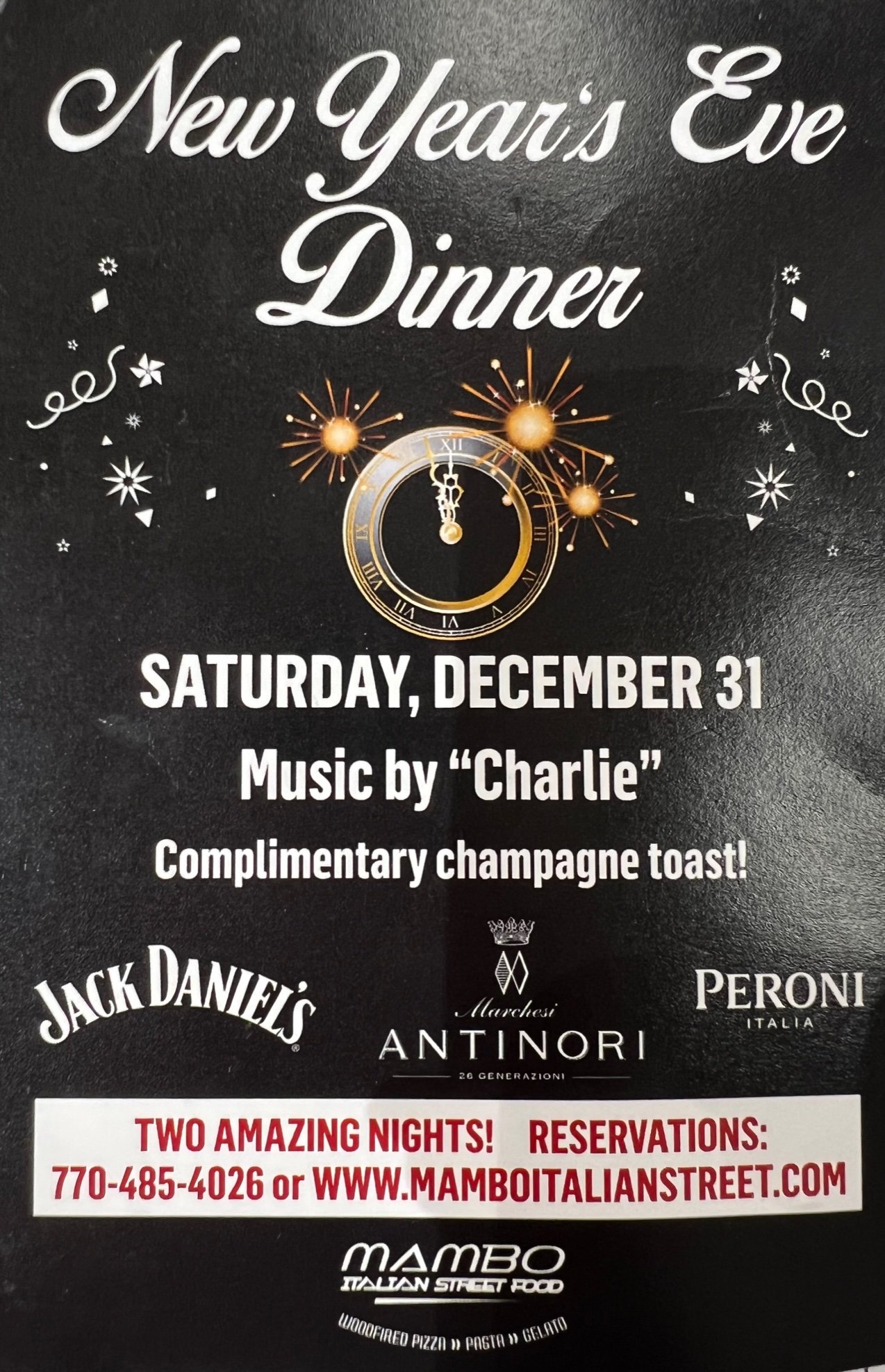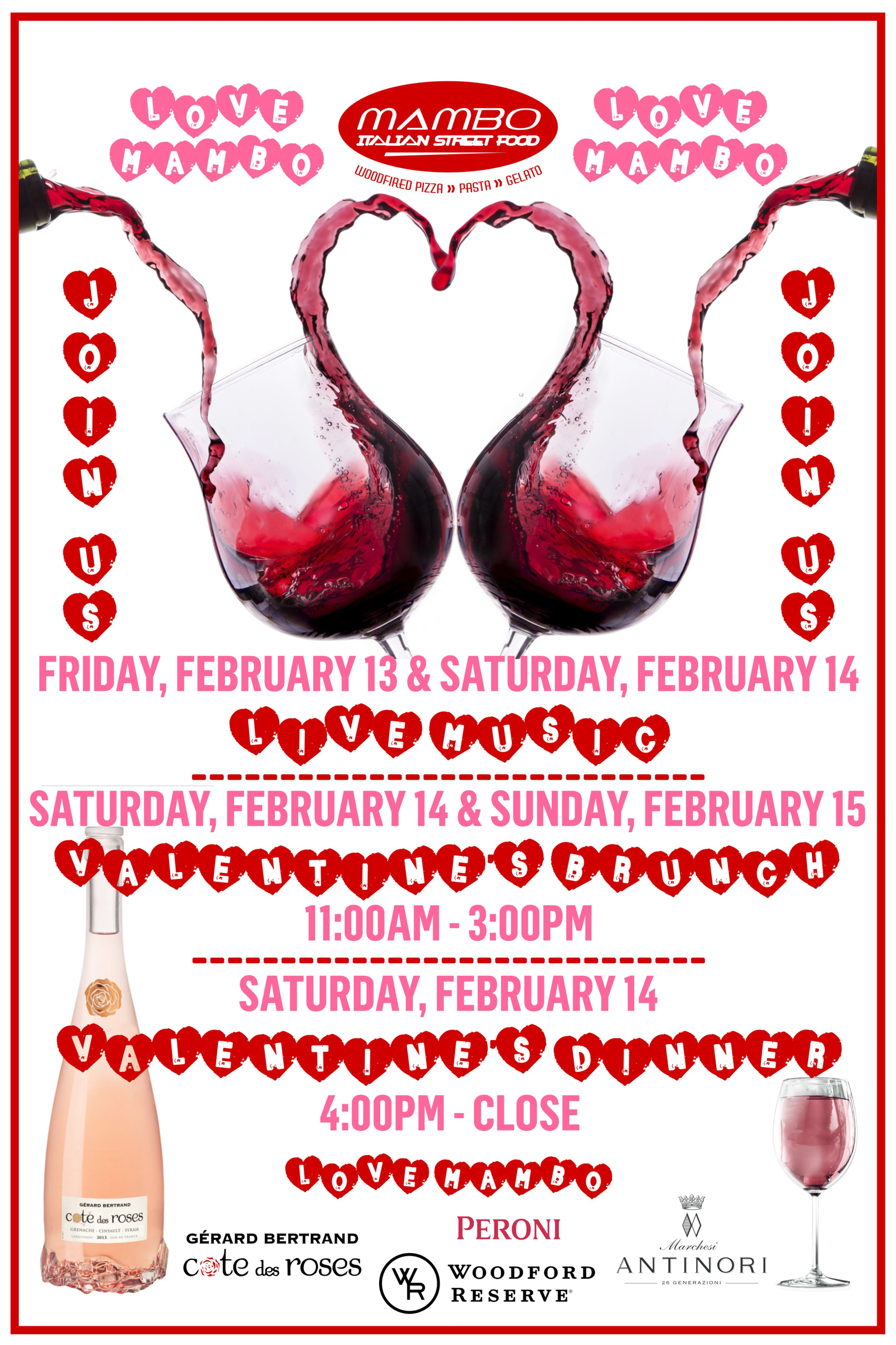 Celebrate Valentine's Day at Mambo Italiano! Special menu and romantic atmosphere. Limited time event - February 14th through 16th. Make your reservations now! Call (770) 485-4026.